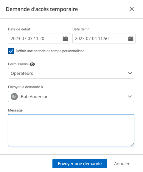 La possibilité de demander un accès temporaire pour une date ou une heure précise