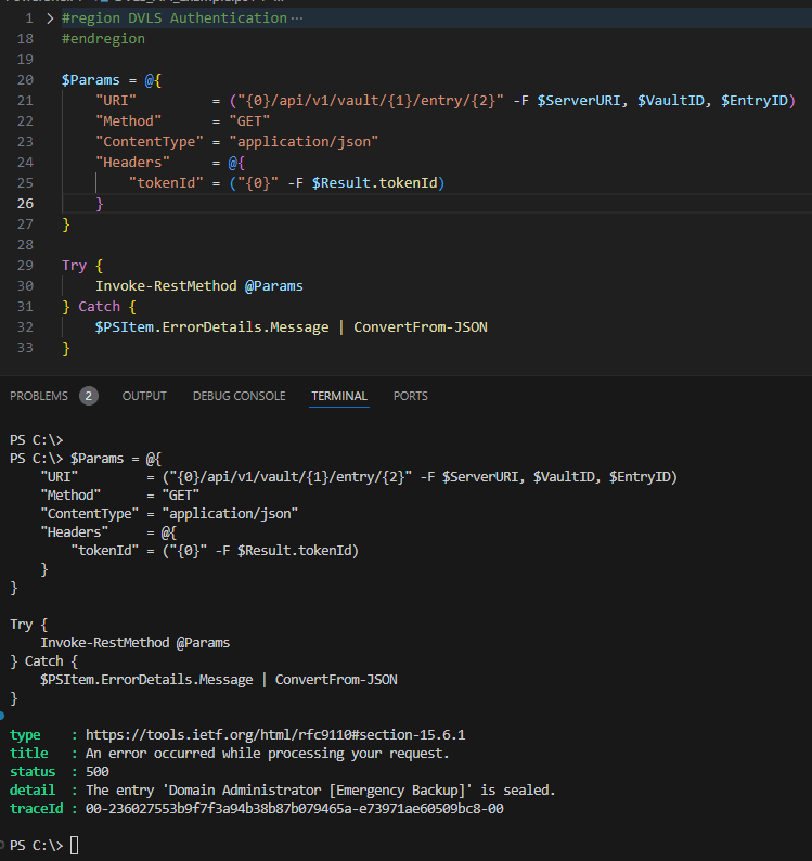 Pour empêcher le contournement de l’état de sceau, DVLS répondra avec un message d’erreur indiquant une entrée scellée si quelqu’un tente d’accéder à une entrée scellée par programmation.