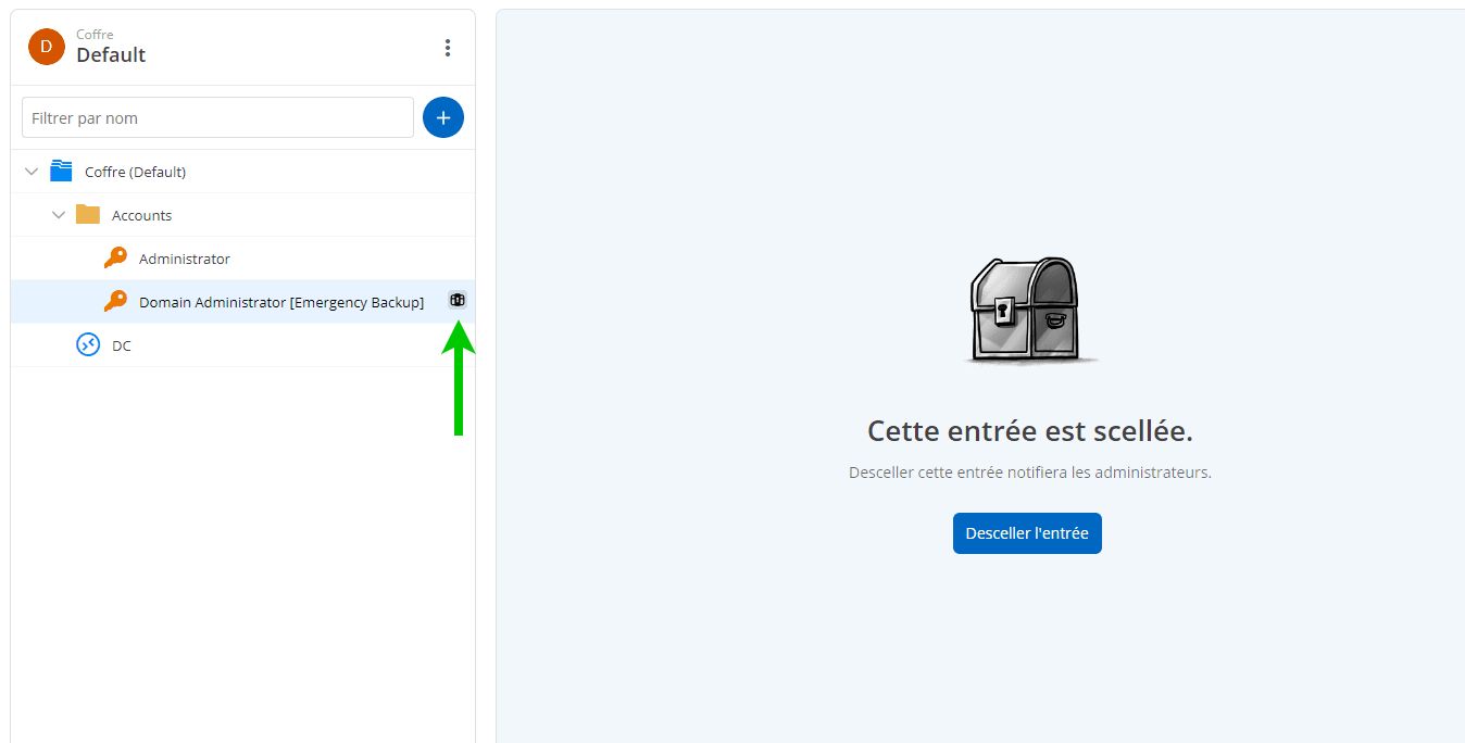 Enfin, cliquer sur le bouton Unseal entry demandera une confirmation et, finalement, une notification sera envoyée à tous les administrateurs. Une étiquette d’information indiquant que l’entrée a été descellée est également affichée dans les détails de l’entrée.
