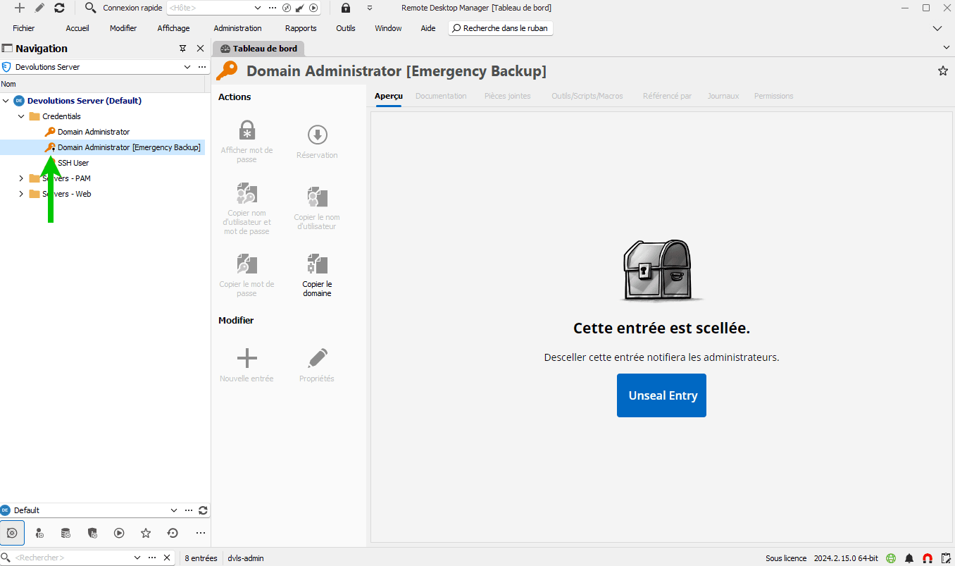À partir de 2024.2, Devolutions Server et Remote Desktop Manager prennent en charge les entrées scellées pour les comptes nécessitant des couches de protection supplémentaires contre les abus.