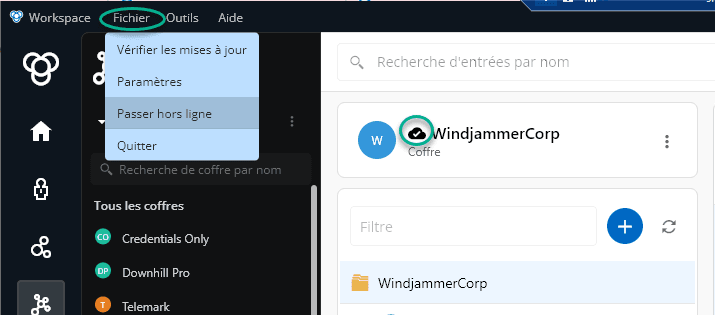 Que ce soit en raison d’une panne de réseau ou par choix, vous pouvez continuer à accéder à vos données hors ligne. En accédant régulièrement à vos coffres, l’application maintient le cache hors ligne à jour.