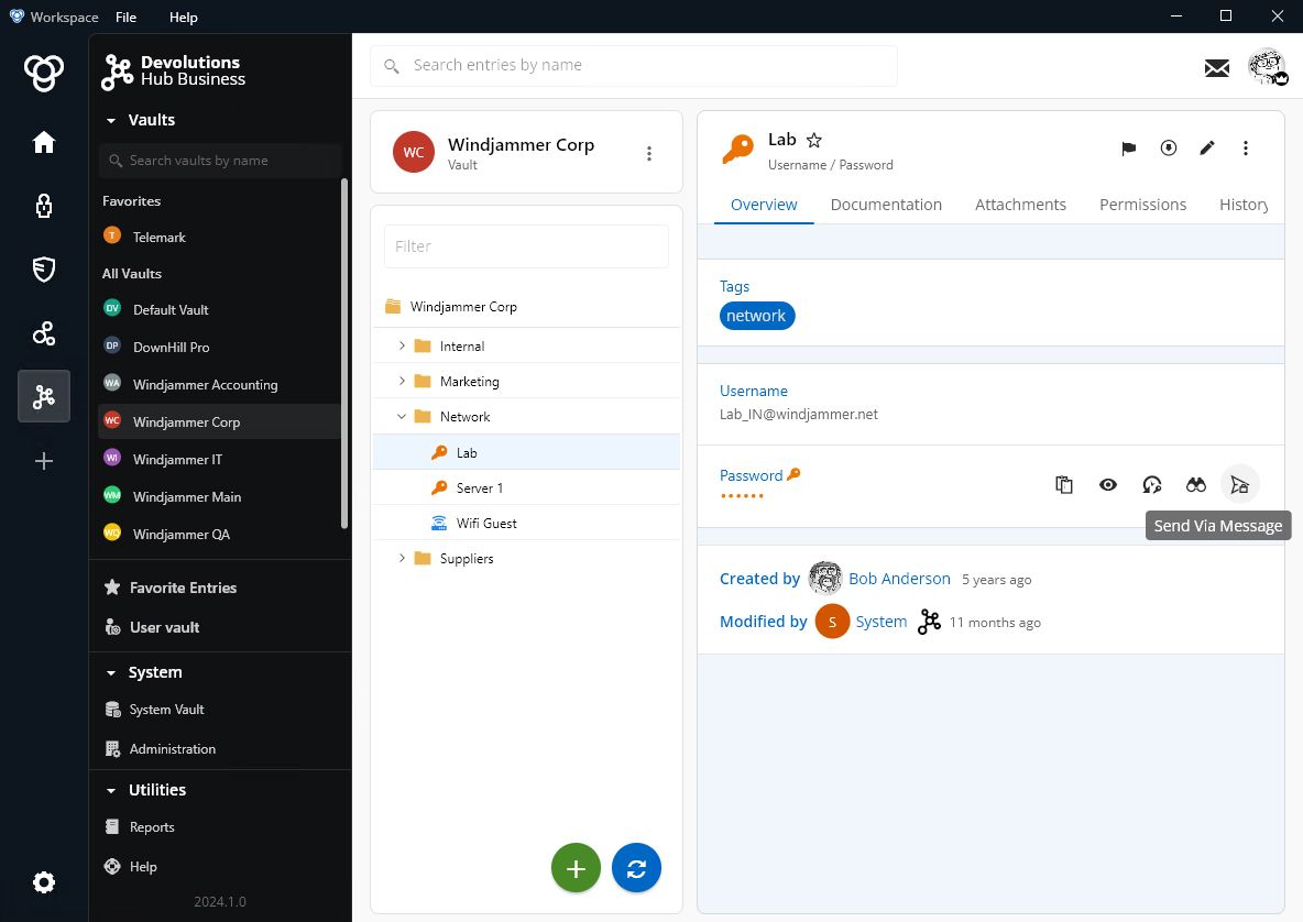 Alternativement, vous pouvez lancer Devolutions Send via votre solution Devolutions préférée : Remote Desktop Manager, Devolutions Server, Devolutions Hub et Devolutions Workspace.