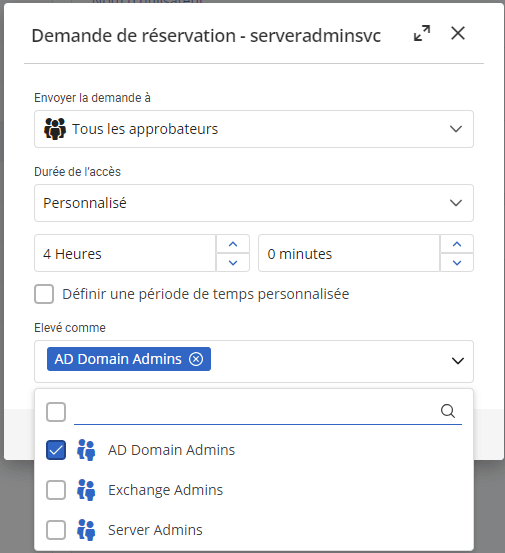 Avec les ensembles de privilèges, les administrateurs peuvent désormais ajouter facultativement un compte PAM à un groupe Active Directory ou Entra ID lors d’une vérification. Cette action d’élévation modifie efficacement les autorisations du compte PAM en l’incluant dans le groupe spécifié. Avant cette mise à jour, chaque compte PAM avait accès à tous les groupes disponibles définis dans la configuration initiale (par exemple, “AD Domain Admins”).