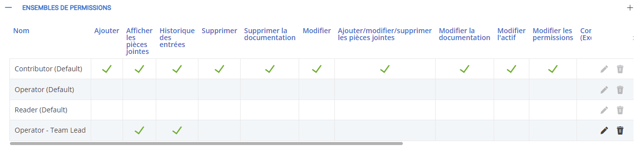 Devolutions Server (DVLS) comprend plusieurs rôles par défaut, tels que Contributeur, Opérateur et Lecteur. Ces rôles sont accompagnés d’ensembles d’autorisations prédéfinis adaptés aux besoins typiques des utilisateurs. Cependant, dans certaines situations, des permissions personnalisées peuvent être nécessaires pour certains utilisateurs ou rôles. Plutôt que de configurer manuellement ces permissions à chaque fois, les administrateurs peuvent créer un ensemble de permissions personnalisées comprenant les autorisations souhaitées. Les ensembles de permissions peuvent être gérés via Administration > Paramètres système > Gestion des coffres > Ensembles de permissions.