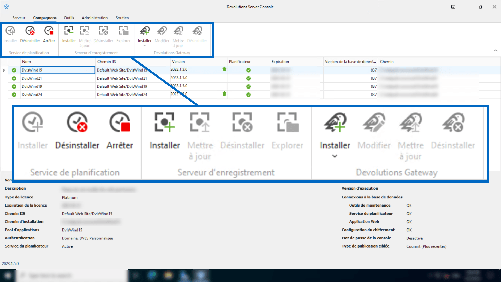 Nous avons ajouté une liste des outils connexes actuellement installés (tels que le planificateur, Gateway, l’enregistreur, le serveur Web, etc.) au tableau de bord de la console pour un accès rapide.