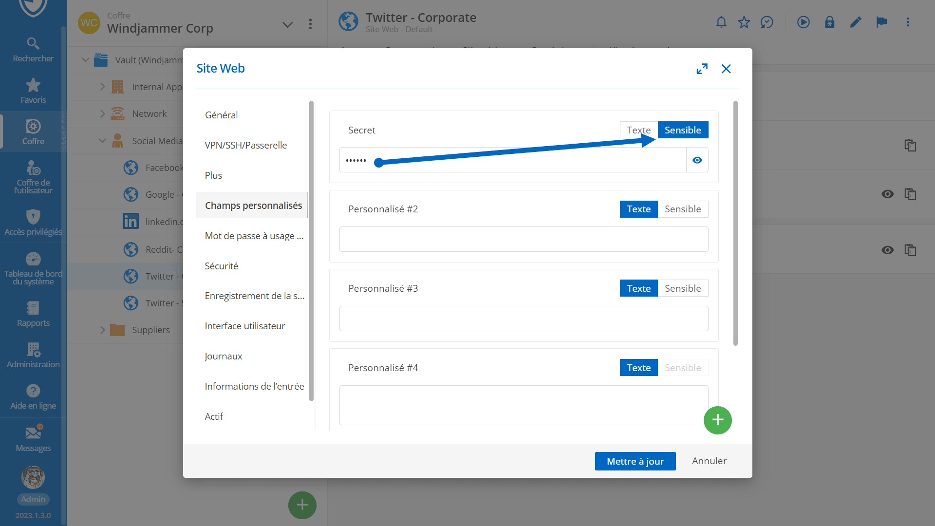 Vous avez désormais la possibilité de rendre « sensibles » les champs personnalisés dans les entrées, ce qui aura pour effet de chiffrer les données.