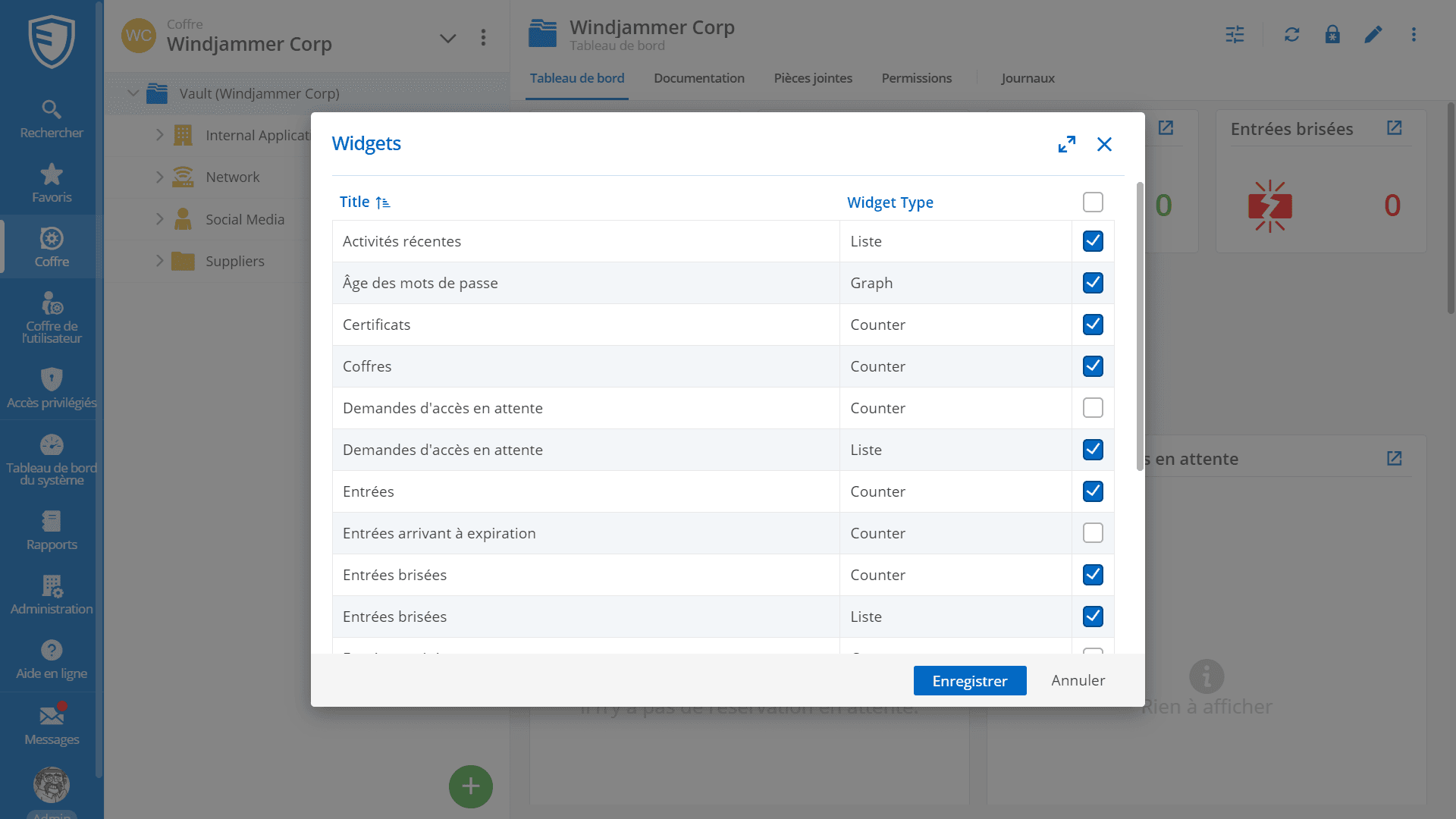 Vous pouvez désormais choisir les widgets que vous souhaitez voir sur votre tableau de bord, afin de profiter d’un accès rapide et clair à toutes vos informations pertinentes. Pour ce faire, il vous suffit de cliquer sur l’icône des widgets, de cocher/décocher les widgets individuels, puis de cliquer sur « Enregistrer ».
