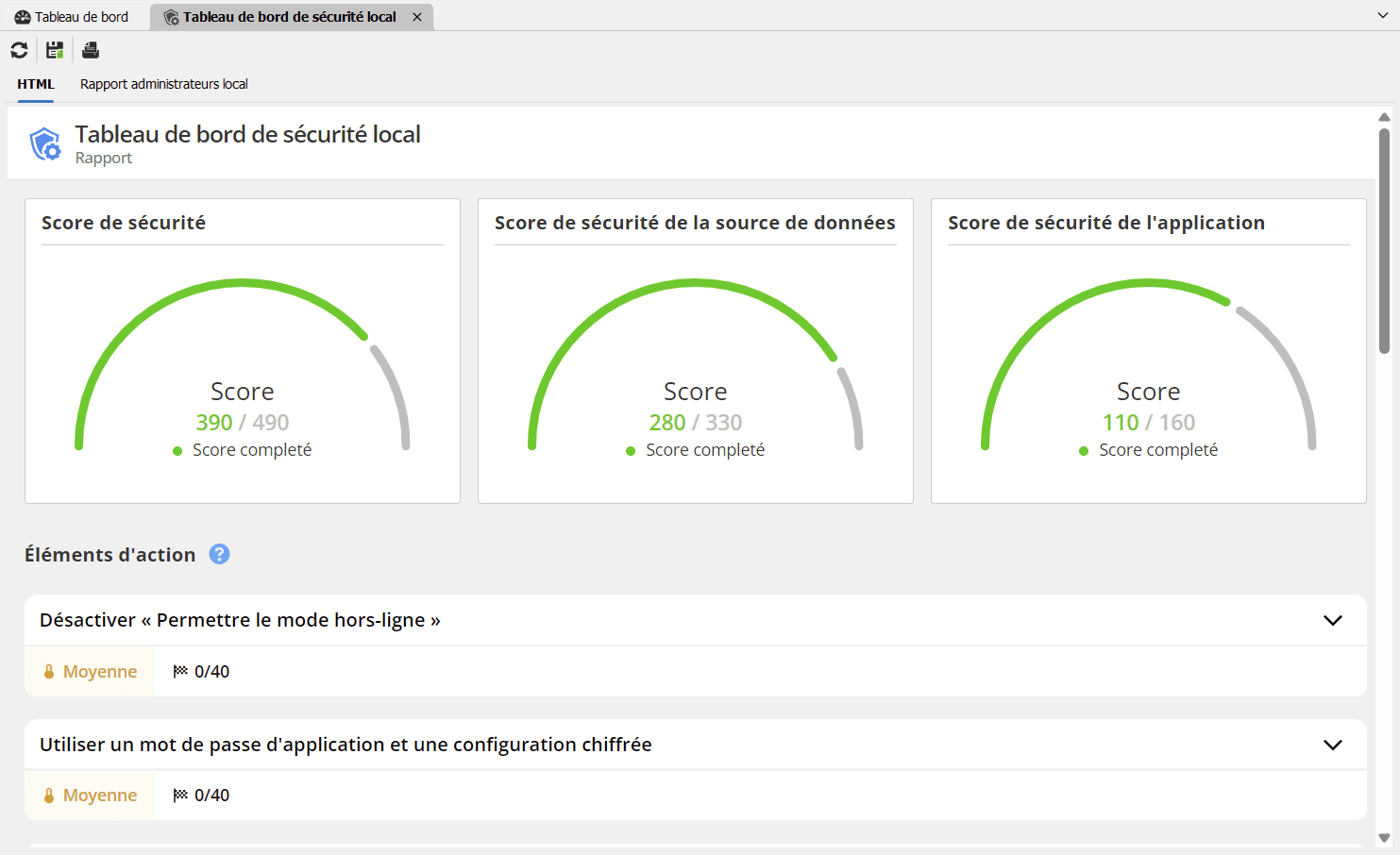 Simplification de la conformité : Pour les organisations soumises à des exigences réglementaires strictes, le tableau de bord de sécurité simplifie le processus de maintien et de preuve de conformité. Avec des éléments actionnables détaillés et des résultats précis, les administrateurs peuvent rapidement produire la documentation nécessaire pour satisfaire les auditeurs.