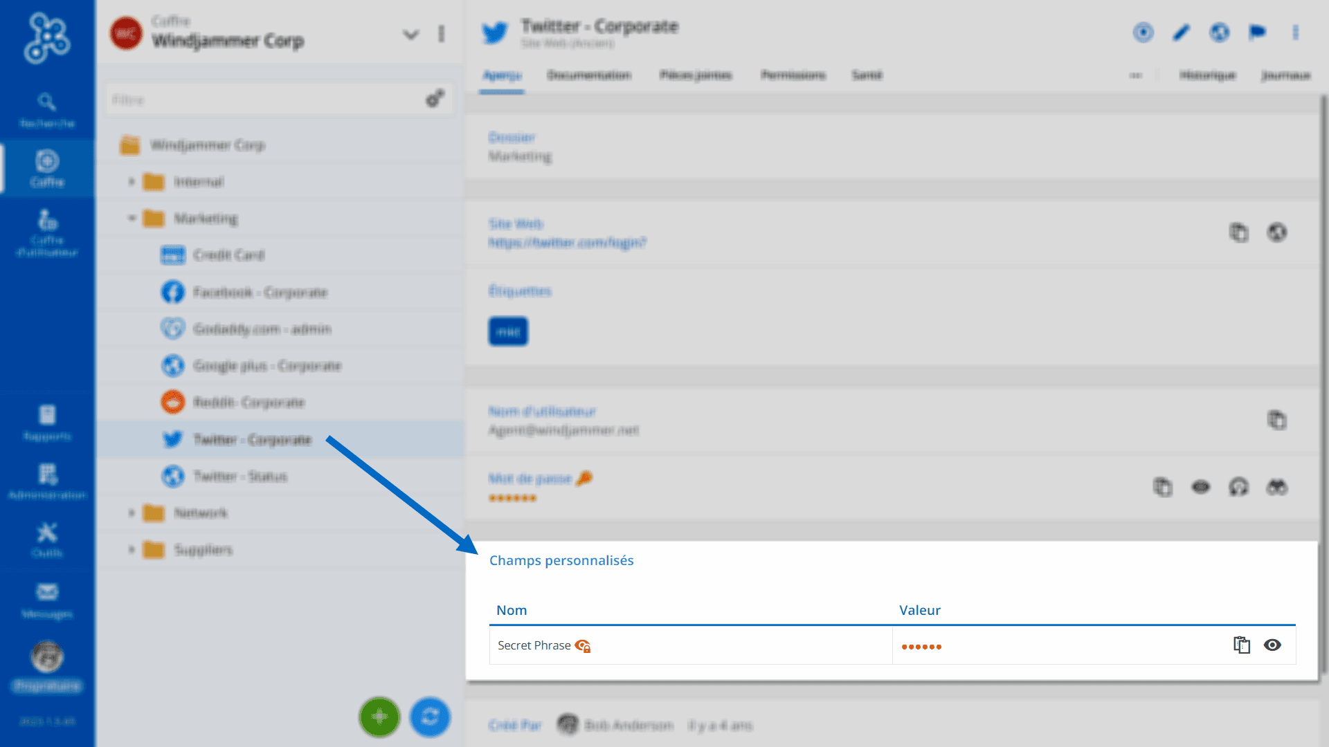 Traiter les champs personnalisés « cachés » comme des données sensibles : Vous avez désormais la possibilité de rendre sensibles les champs personnalisés dans les entrées, ce qui aura pour effet de chiffrer les données. Une nouvelle permission « CanViewSensitive » a été ajoutée à tous les utilisateurs pour qu’ils aient accès à ce champ d’entrée.