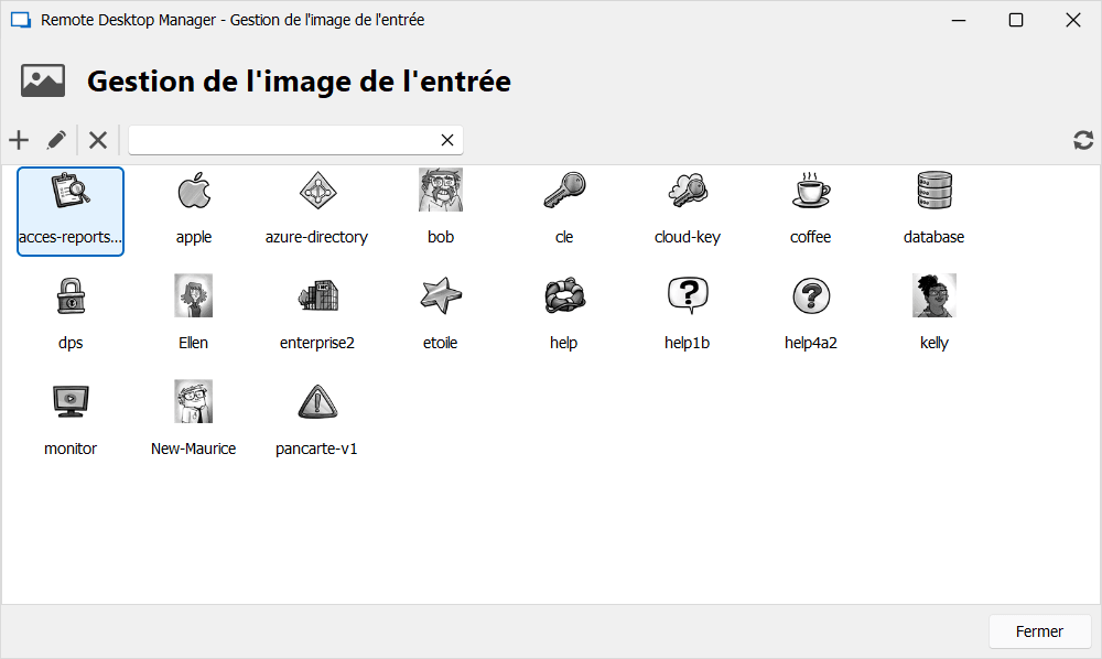 Gestion de la liste globale des images : Dans les versions précédentes, les entrées d’images personnalisées étaient stockées directement dans les entrées. Vous pouvez à présent les stocker globalement dans la source de données. Cette méthode devrait permettre de réduire la taille du coffre et d’améliorer les performances de la source de données,, surtout si vous avez beaucoup d’entrées. Il est également plus facile d’utiliser des images personnalisées dans RDM.
