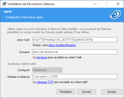 Configuration de ngrok dans l’installateur