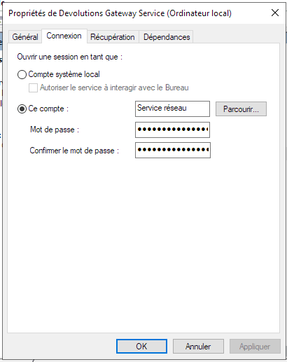 Installation de Devolutions Gateway en tant que compte NetworkService sous Windows