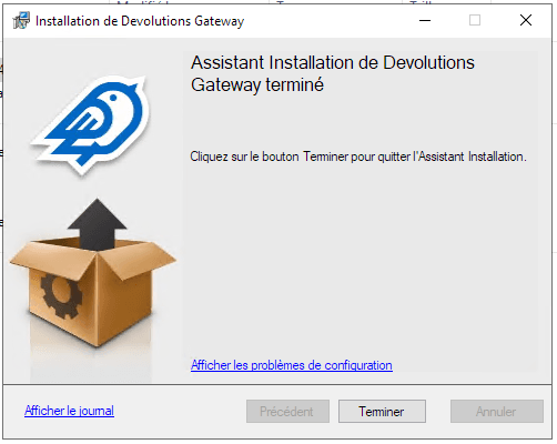 La version 2024.2.2.0 de Devolutions Gateway introduit un nouveau rapport post-installation ou de réparation pour les problèmes de permission de configuration. Ce simple rapport HTML vous aidera à diagnostiquer tout problème éventuel et à vous assurer que tout fonctionne correctement! Cliquez sur le lien “Voir les problèmes de configuration”, qui apparaît si l’installateur détecte des problèmes.