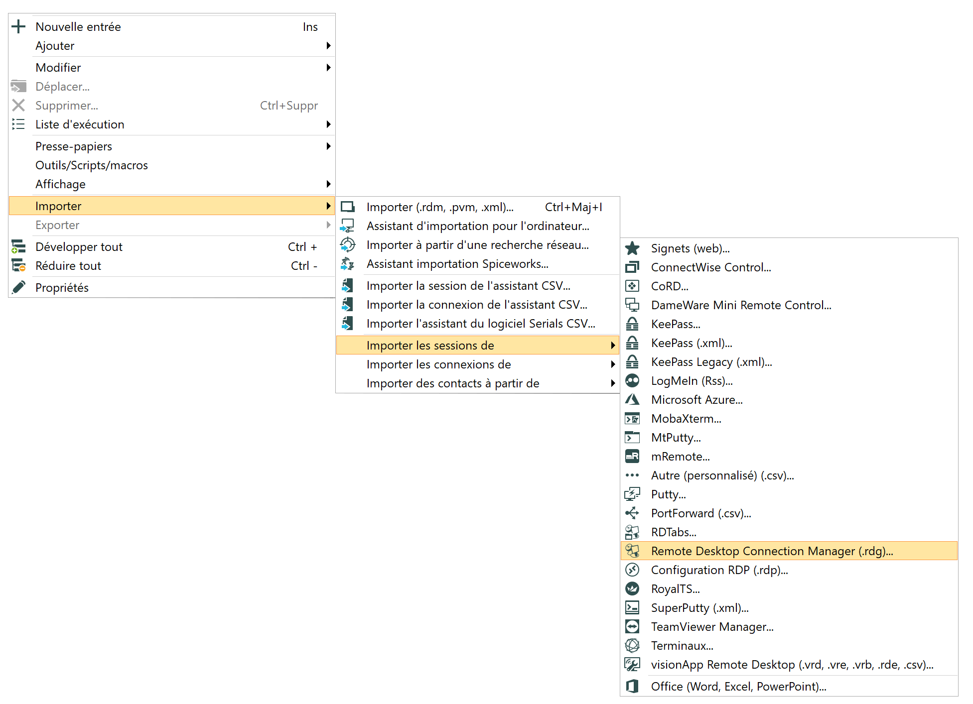 Vous souhaitez essayer RDM, mais vous ne voulez pas perdre vos données? Bonne nouvelle! Vous pouvez importer vos sessions à partir d’une application existante ou d’un format de fichier existant. Vous pouvez consulter l’aide en ligne disponible ici.