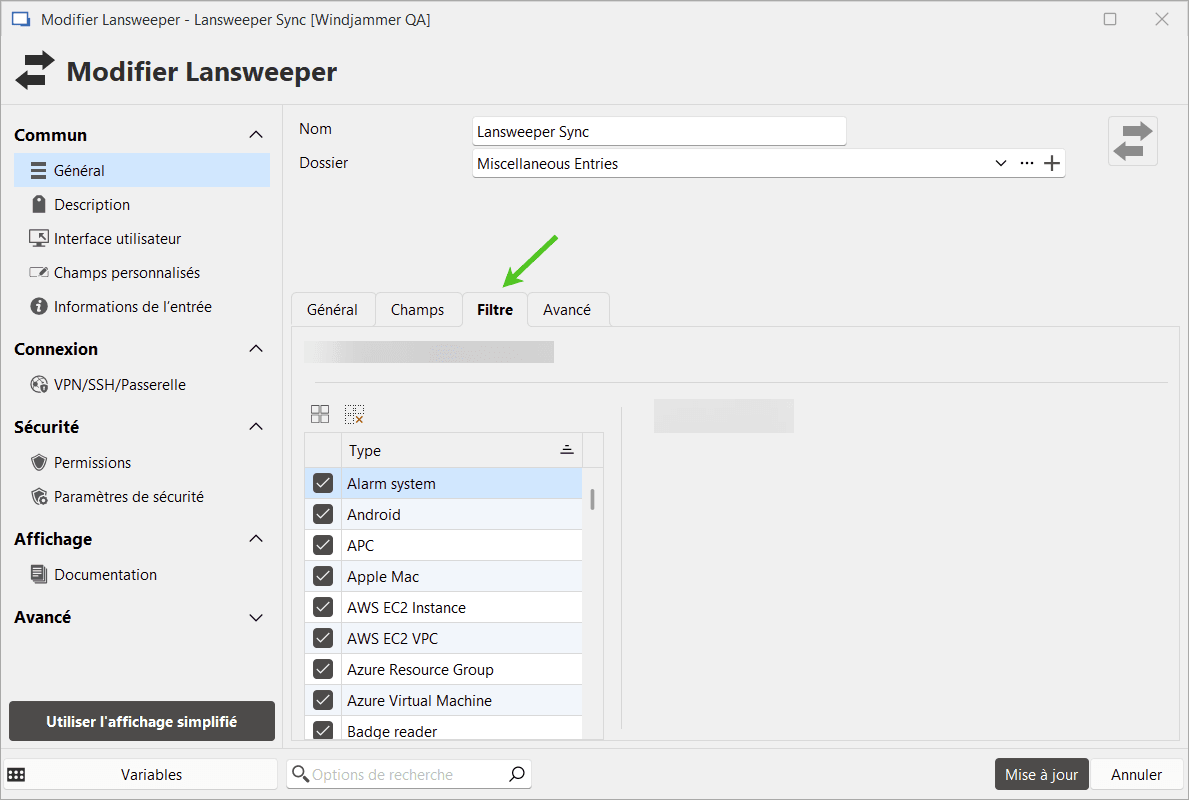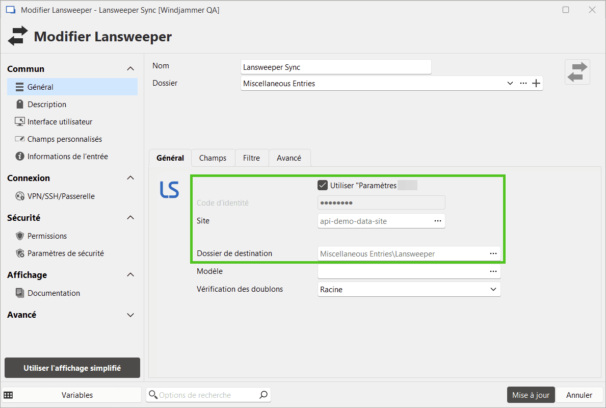 Édition > Ajouter une nouvelle entrée > Synchroniseuret sélectionnez le synchroniseur Lansweeper.