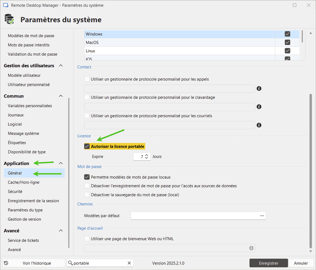 Configuration des licences portables