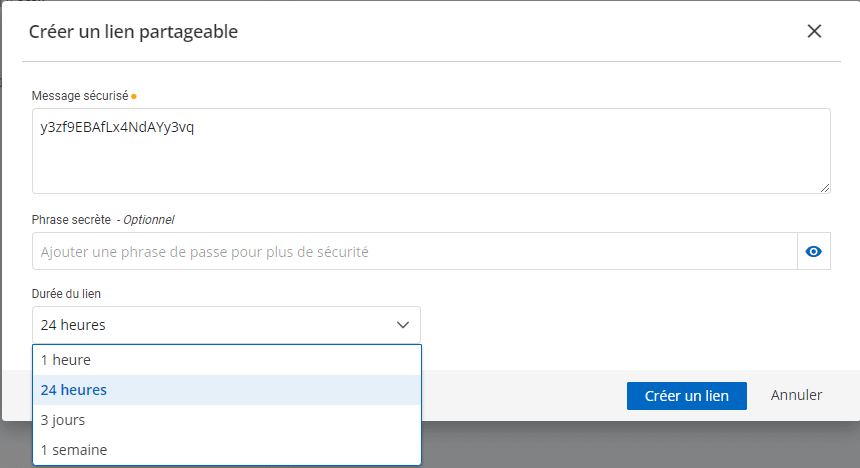 Auparavant, les messages sécurisés envoyés via le service intégré gratuit Devolutions Send expiraient après un jour. Avec cette version, vous pouvez désormais choisir la durée d’expiration des liens sécurisés envoyés via Devolutions Server. Vous pouvez choisir une durée allant de une heure à une semaine !