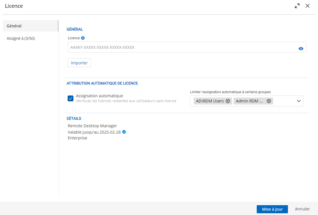 - Une licence utilisateur pour Remote Desktop Manager ou Devolutions Launcher attribuée