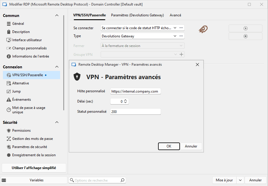 Prise en charge de l’option VPN « Se connecter si le code de statut HTTP échoue » dans Hub Business et RDM