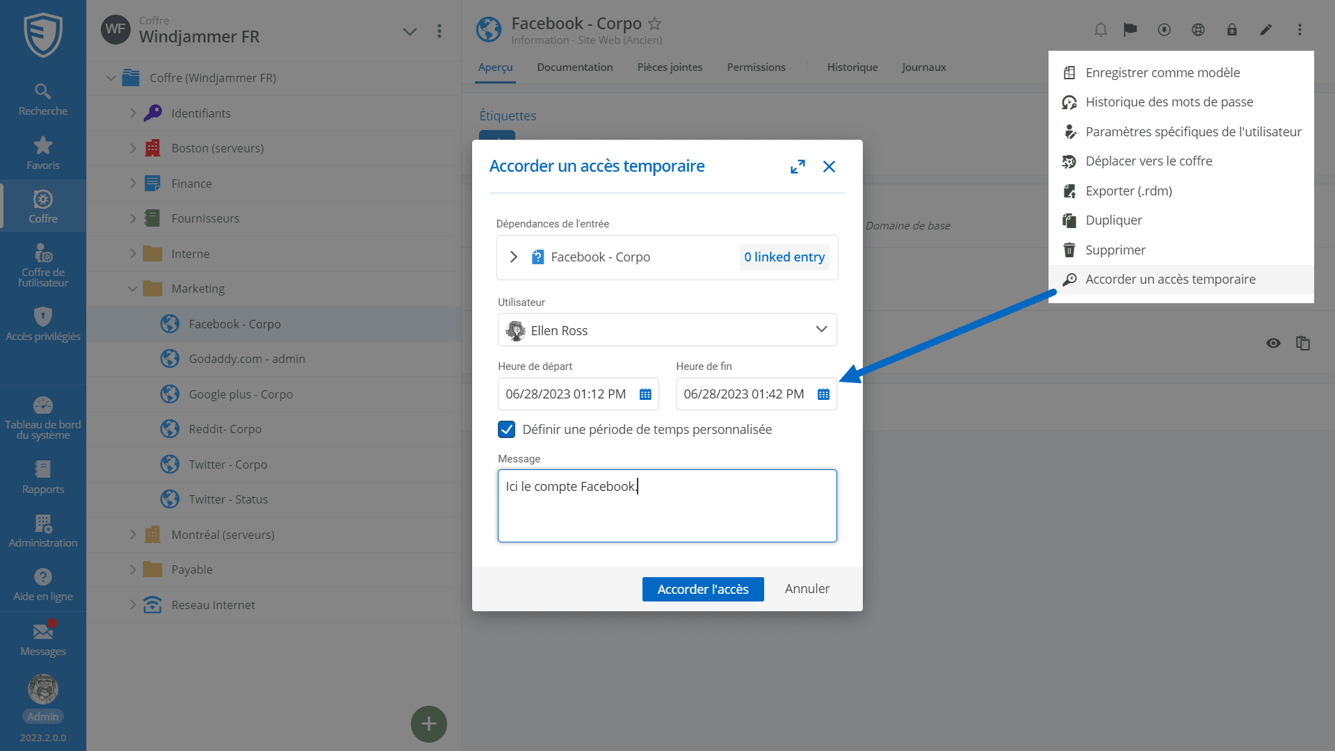 Ajout d’une fonctionnalité permettant aux administrateurs d’accorder des accès temporaires