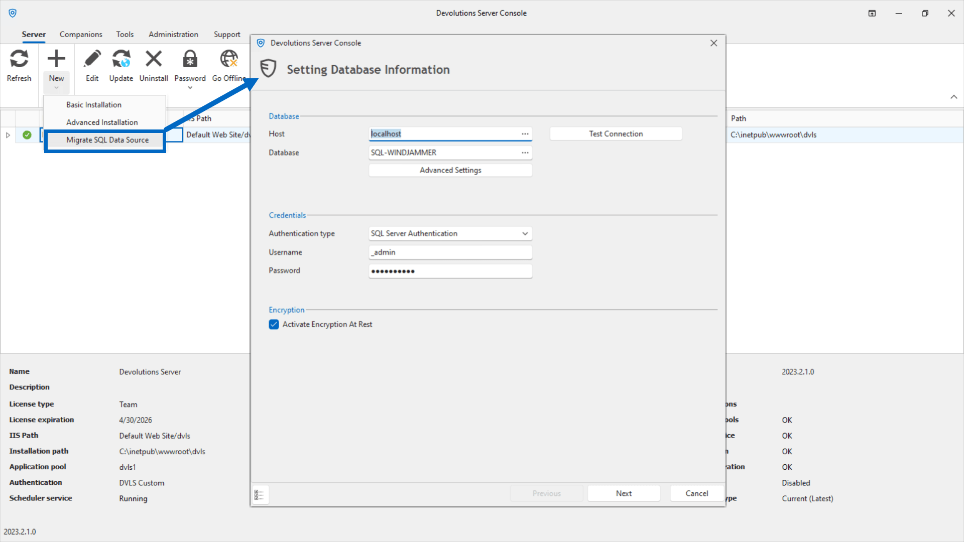Ajout d’un outil permettant la migration à partir de SQL Server vers Devolutions Server