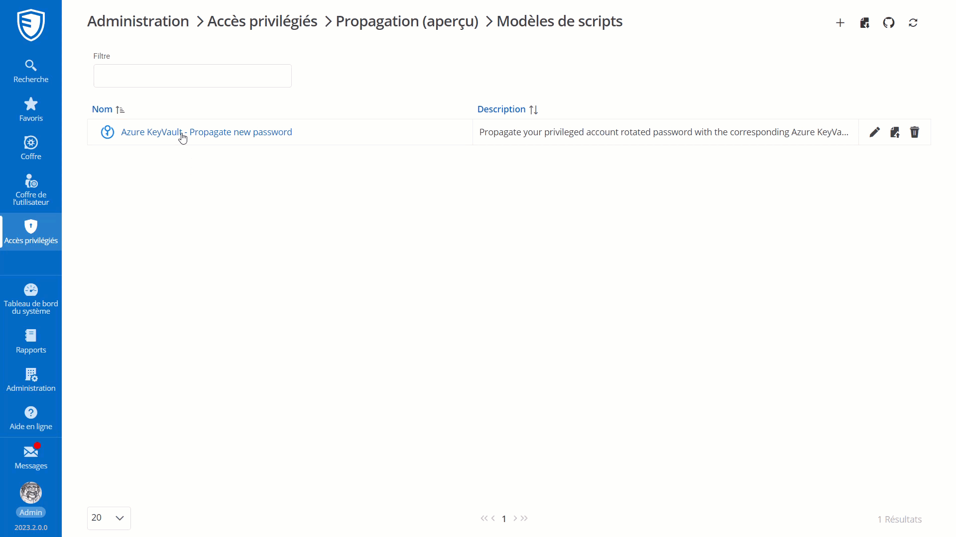 La nouvelle fonctionnalité de propagation de mots de passe propose des modèles aux utilisateurs qui peuvent ensuite en personnaliser les propriétés. Ces modèles sont capables de générer des scripts PowerShell sur mesure pouvant distribuer des mots de passe à des terminaux préalablement définis en toute simplicité. Jetez un œil à la section traitant des modèles de propagation de GitHub (en anglais uniquement) pour plus de détails et d’exemples.