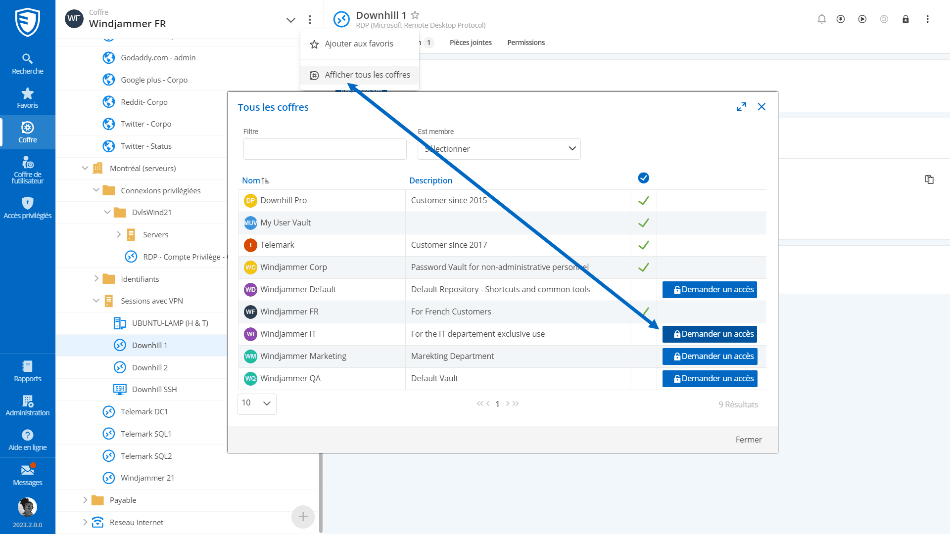 Les utilisateurs peuvent dorénavant effectuer une demande d’accès à un coffre en partage public ainsi qu’aux coffres de gestion des accès privilégiés (PAM).