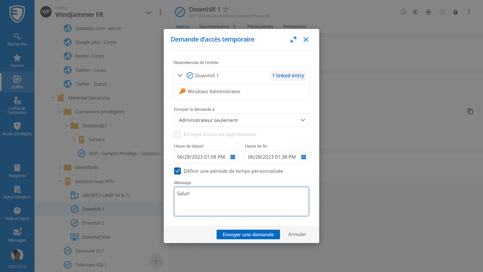 Plus haut, nous avons parlé des importantes améliorations des fonctionnalités relatives aux accès temporaires dans Devolutions Server. Nous avons de bonnes nouvelles pour vous : ces améliorations s’appliquent également aux comptes privilégiés!