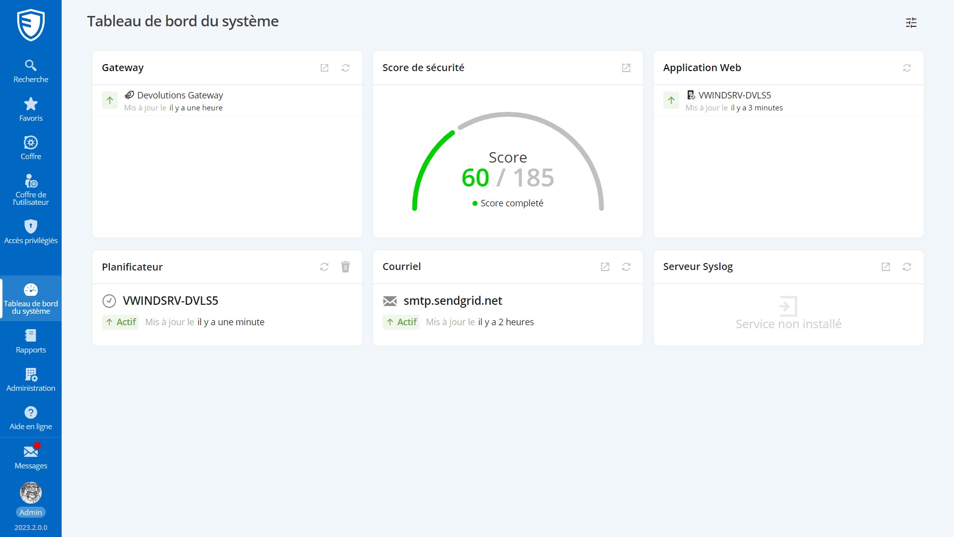 Des modules de journalisation de système et de courriel sont désormais affichés sur le tableau de bord du système. Si un problème survient et qu’un des modules ne répond plus, une notification est automatiquement envoyée à l’administrateur par courriel.