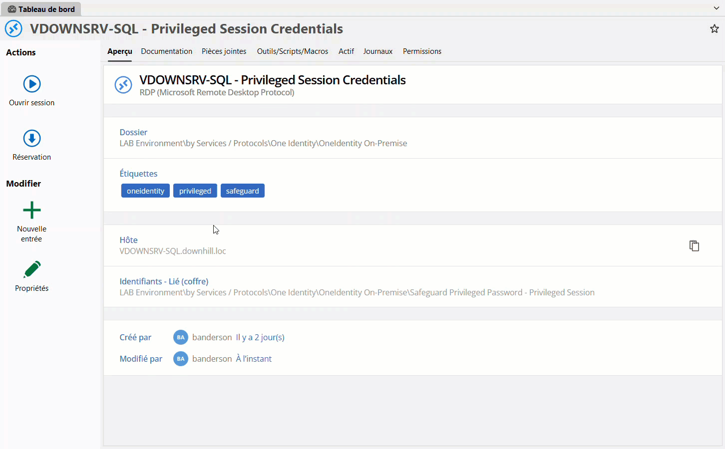 Nous avons étendu notre prise en charge de One Identity avec un nouveau mode dans l’entrée d’information d’identification, intégrant directement Safeguard pour les sessions privilégiées. Cette fonctionnalité permet de rediriger les sessions RDP de manière sécurisée via le proxy One Identity — sans exposer les informations d’identification. Semblable à nos intégrations avec CyberArk PSM et Delinea Secret Server, cette approche par proxy garantit un contrôle total sur l’initiation et la supervision des sessions. Il suffit de lier votre session RDP à une information d’identification Safeguard pour ouvrir une session en toute sécurité.