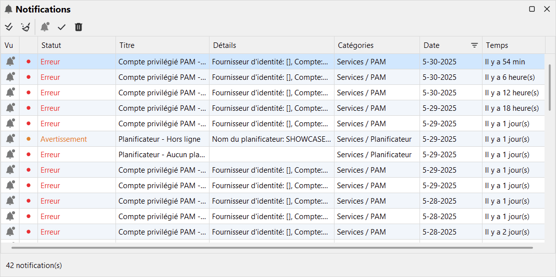 Restez informé sans quitter RDM. Les notifications de Devolutions Server sont désormais entièrement intégrées à Remote Desktop Manager. Vous recevrez les mêmes mises à jour que dans l’interface web de DVLS, directement dans RDM. Marquez les notifications comme lues ou supprimez-les depuis l’une ou l’autre des interfaces — elles resteront synchronisées. De plus, grâce à l’interrogation en arrière-plan régulière, vous êtes toujours à jour.