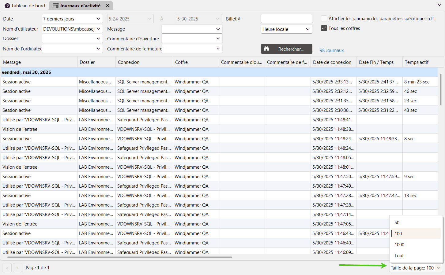 Pour améliorer les performances, nous avons ajouté une pagination aux journaux d’activité afin que RDM ne charge qu’un sous-ensemble de journaux lorsqu’il y en a plus de 100.