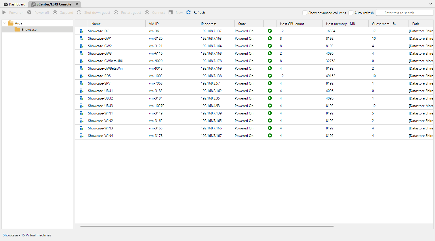 The dashboard now displays the vSphere folder structure, and you can view additional columns such as DNS hostname, Guest OS, and more for your listed VMs.
