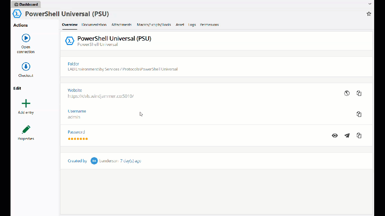 Following the announcement that PowerShell Universal is now part of Devolutions, we’ve added a dedicated entry for users to start building with PowerShell Universal (PSU) directly inside RDM. This is an initial integration. More exciting functions will be added in future releases. Stay tuned!